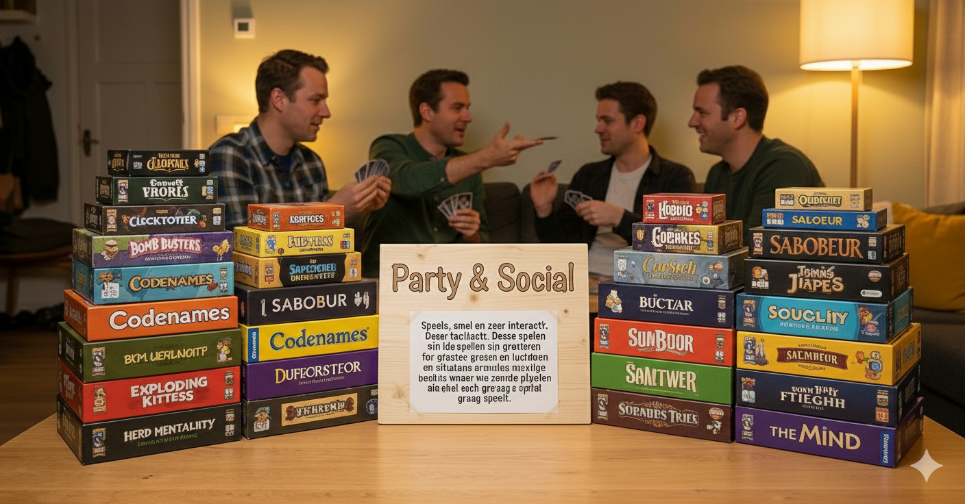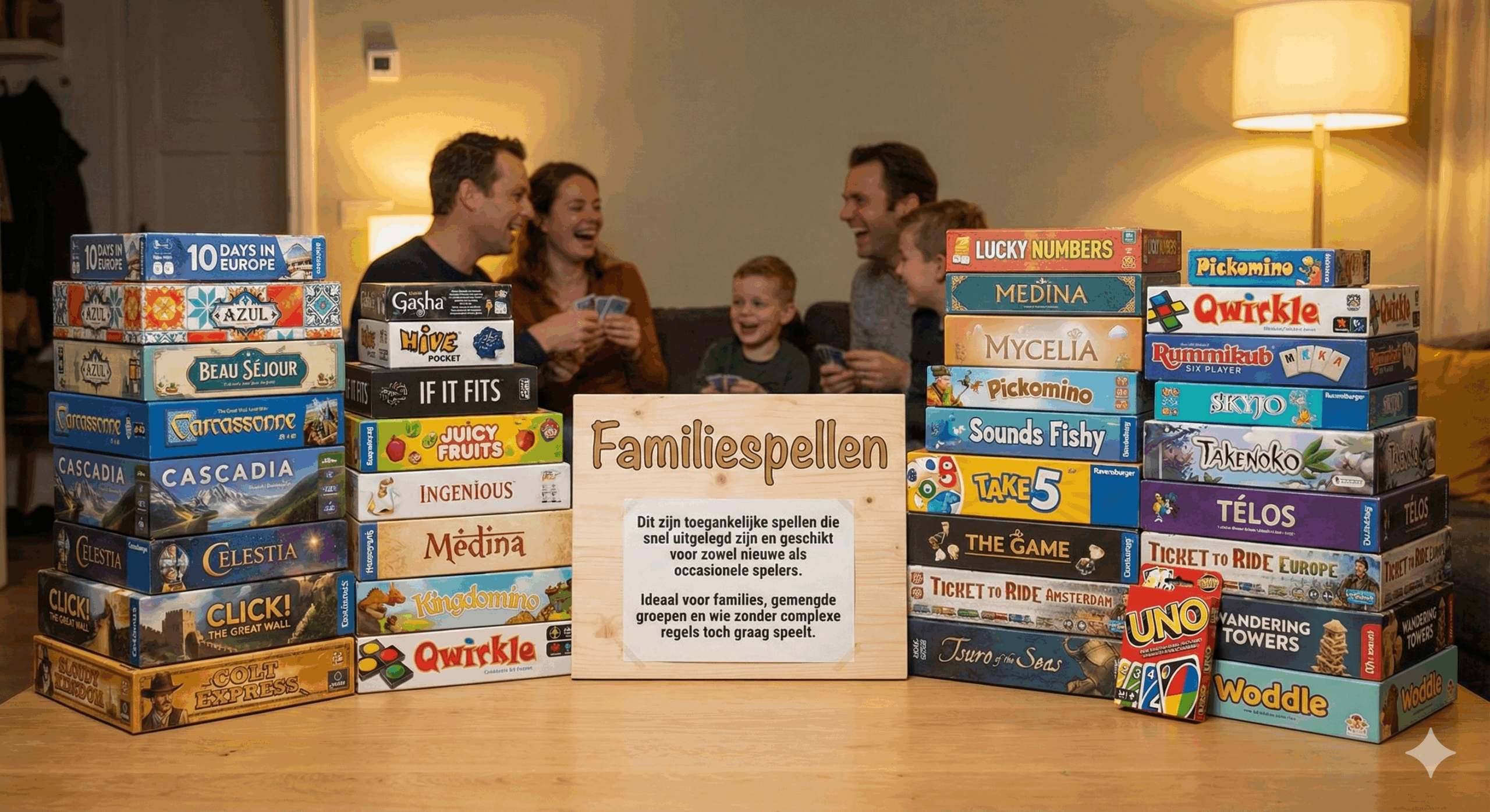 Dit zijn toegankelijke spellen die snel uitgelegd zijn en geschikt voor zowel nieuwe als occasionele spelers. Ideaal voor families, gemengde groepen en wie zonder complexe regels toch graag speelt.